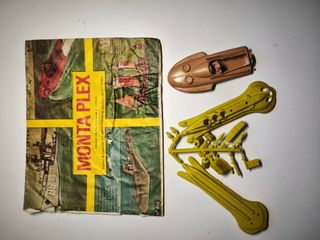 Colección de modelos a escala Montaplex, serie 400. 1 sobre con algunas perforaciones y una colada de TANQUE y un platillo volante incompleto