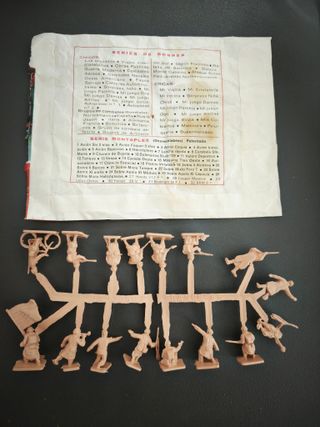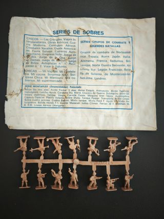 Lote de figuras de soldados de plástico de la marca Sobreplast, modelo tipo Montaplex. Emboscada. El sobre esta desgastado