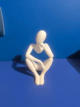 Figura decorativa de un pensador en color blanco. Su diseño abstracto y minimalista la hace ideal para cualquier espacio. Fabricado con impresora 3D. - Material: PLA. - Acabado: Mate. - Altura: 11cm