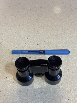 Pequeños binoculares negros, ideales para eventos o teatro. - Diseño compacto y ligero. - Lentes con acabado brillante.