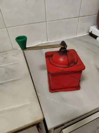 Molinillo de café antiguo, ideal para coleccionistas o para dar un toque retro a tu cocina. - Diseño vintage. - Cuerpo de metal y plástico. - Cuchillas de acero. - cable nuevo para reposicion vintage