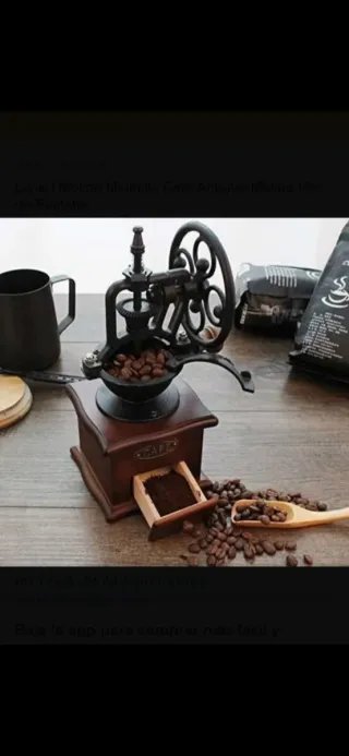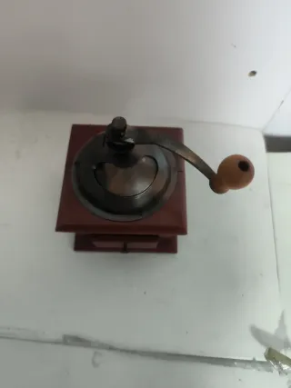 Molinillo de café de estilo antiguo, con una base de madera y detalles metálicos. - Diseño clásico. - Mecanismo de manivela. Madera Hierro Hago envío