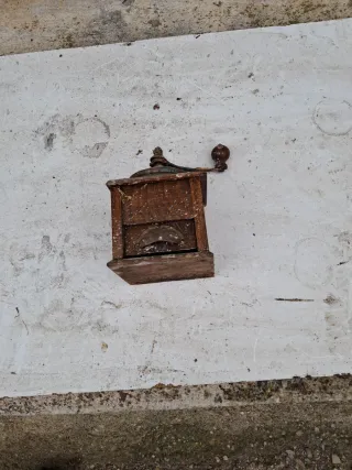 Molinillo de café antiguo, hecho a mano , es una pieza muy curiosa. MIRAR FOTOS para ver detalles, condiciones y medidas. Cualquier duda me preguntas. Tengo más cosas en el perfil por si quieres hacer un lote