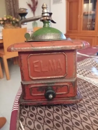 Molinillo de café antiguo de la marca ELMA, con un diseño clásico y robusto. Molino de café antiguo Es funcional, no tiene roturas. Restauración de pintura