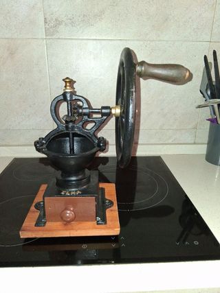 Molinillo de café antiguo de estilo vintage. Ideal para amantes del café clásico. - Molinillo manual de madera y metal. - Diseño antiguo y elegante. - Dispone de cajón para recoger el café molido. - Se encuentra en buen estado de conservación. Vintage