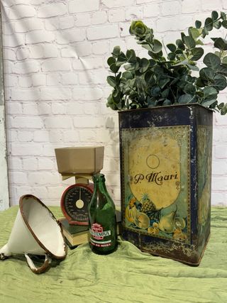 Infinidad de artículos antiguos originales. Todos los objetos que aparecen en las fotos han salido de nuestro almacén. Son fotos reales. Damajuanas 9€ 32cm, 20€ 40cm y 25€ 45cm. Latas antiguas desde 10€ en adelante. Botellas, refrescos y sifones desde 5€ y 10€ en adelante. Cajas de madera de reparto de botellas, cubos, vasijas, menaje de cocina, barro... etc Atrezo, mobiliario, antigüedades, vintage, catering, boda, casa, rural, rústico, escaparate, mesas, sillas, tinajas, molinillo, cafe, chocolate, vintage, obra, estudio, arquitectura