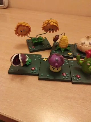 Conjunto de 6 figuras coleccionables de Plants vs Zombies. Cada figura está montada sobre una base individual. - No son de plástico - Figuras de plantas y zombies. - Incluye 6 piezas únicas.