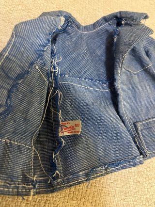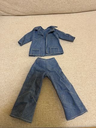 Conjunto de ropa para la muñeca Nancy de Famosa, modelo Safari. - Chaqueta vaquera con bolsillos. - Pantalones vaqueros acampanados.