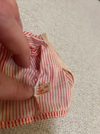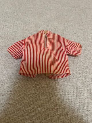 Camiseta de rayas rojas y blancas para muñeca Nancy de Famosa. - Diseño clásico. - Cierre trasero con botón.