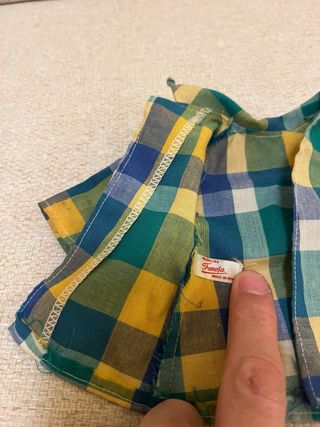 Camisa de la muñeca Nancy de Famosa, modelo Alegría. - Diseño a cuadros. - Colores verde, amarillo y azul.