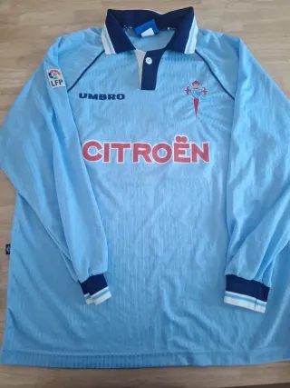 Camiseta de fútbol del Celta de Vigo de la marca Umbro, talla Xl Modelo de manga larga con el dorsal 19 de Djorovic. - Color azul celeste. - Cuello tipo polo con botones. - Logo de la LFP en la manga. - Inscripción CITROËN en el frontal.