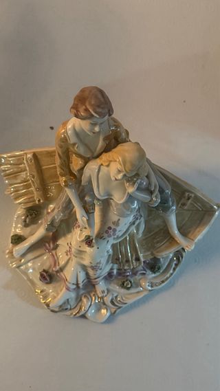 Preciosa figura de porcelana que representa a una pareja en un momento romántico. Ideal para coleccionistas o como detalle decorativo. - Figura de porcelana detallada. - Diseño de pareja. - Base decorativa.