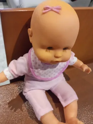 Muñeca Nenuco con ropa rosa y babero. - Incluye plato y cuchara - Muñeca de cuerpo blandito - Babero con estampado de puntos.