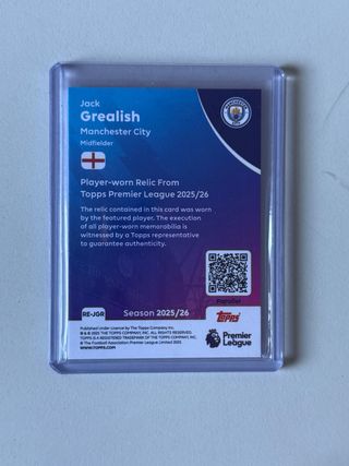 Parche de colección de Jack Grealish, Official Memorabilia. - Número de serie: 95/99. - Incluye un trozo de tela del jugador utilizada por el.