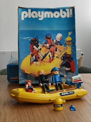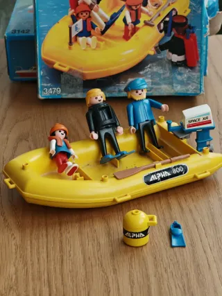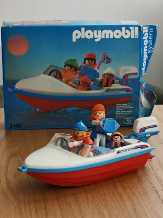 Set de Playmobil 3142 con un barco y figuras. - Barco de juguete con diseño deportivo. - Incluye 4 figuras. 2 No son exactamente las originales del set. - Caja original incluida.