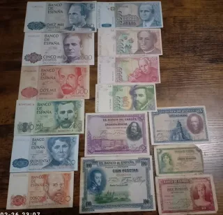 15 Billetes de Peseta (de 5 a 10000 ptas.)