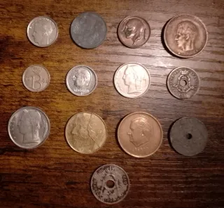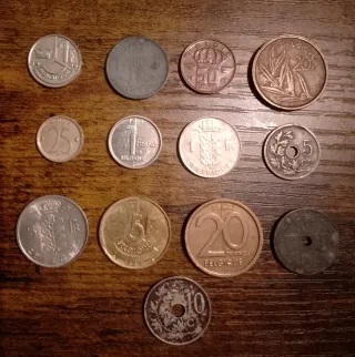 Lote de 13 monedas de franco belga, todas diferentes. Monedas circuladas, ver bien las fotos, son las que mando.