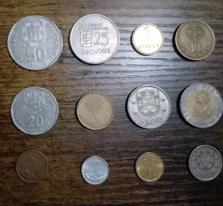 Lote de 12 monedas portuguesas de escudo, todas con diseños distintos. Monedas circuladas, ver bien las fotos, son las que mando.