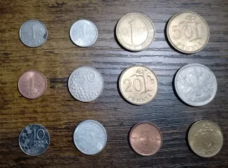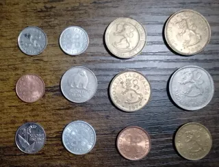 Lote de 12 monedas de Finlandia, todas diferentes. Monedas circuladas, ver bien foto, son las que mando