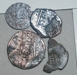 Conjunto de monedas antiguas de plata. - Material: Plata - Diseño: Escudo central con inscripciones alrededor.