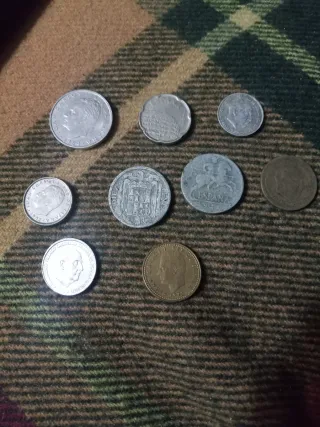 Conjunto de monedas españolas de diferentes épocas y valores. - Monedas de plata y otros metales. - Diseños variados con escudos y retratos. - Ideal para coleccionistas.