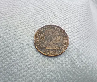 Moneda de medio céntimo de escudo con el año 1867 ceca de Segovia isabel II entrego en mano por Madrid centro envío ordinario 1€ envío certificado 6,00€ acepto transferencia bancaria, ingreso en cuenta ( banco ING) o bizum también puedo enviar por Wallapop