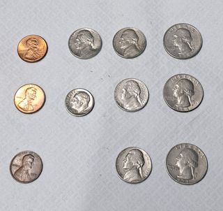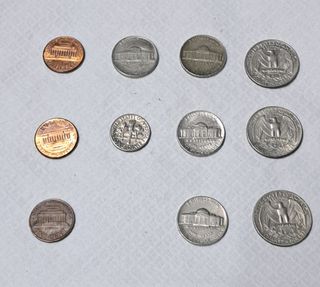 onze monedas Estados Unidos tres Monedas 15 centimos quatro Monedas. 5 centimos una Moneda. 10 centimos tres Monedas 1 centimo