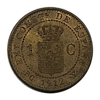 Moneda Cobre España 1912 1 Céntimo Alfonso XIII