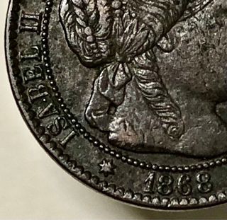 Moneda 1 céntimo de Escudo 1868 Isabel II