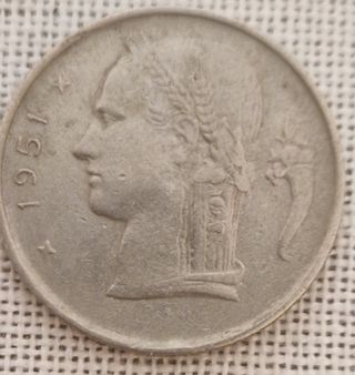 Moneda de 1 céntimo de francos belgas del año 1951. Moneda antigua, ya no válida en Bélgica