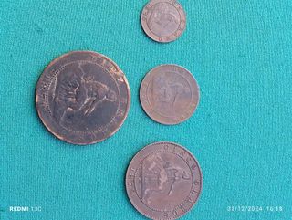 lote 4 monedas antiguas 1 y 2 centimos de España : 1 y 2 centimos del Gobierno provisional de 1870, 1 centimo 1906 y 2 centimos de 1905 de Alfonso XIII. Recogida en Barcelona . NO NEGOCIO . Envios pagando por Bizum .