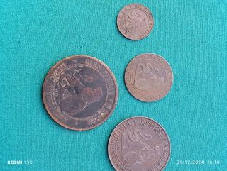 Lote de monedas de primera República gobierno provisional 1 céntimo 2 céntimos 5 céntimos y 10 céntimos