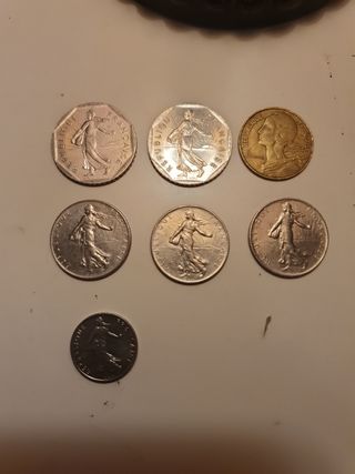 Lote de 7 monedas de francia. Francs, Francos franceses. - 2 francs del 1989 - 2 francs del 2000 - 2x 1 franc 1977 - 1 franc 1976 - 1/2 franc 1997 - 20 centimes 1988