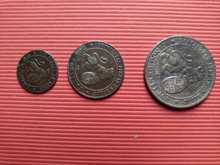 Monedas 1ª República: 5, 2 y 1 céntimo