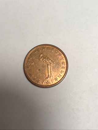Moneda de 1 céntimo de Eslovenia del año 2007. - Diseño con un ave estilizada. - Inscripción SLOVENIA y estrellas. - Año de acuñación: 2007.
