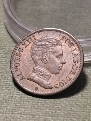 Moneda de 1 céntimo de peseta de Alfonso XIII del año 1906 con estrella 6 La que se ve en las fotos