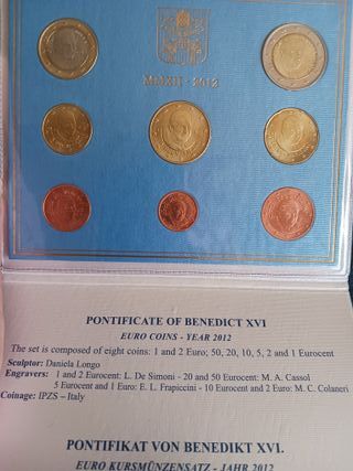 Conjunto de ocho monedas de euro del Vaticano del año 2012. Con los ocho valores, de 1 céntimo a 2 euros en cartera original.