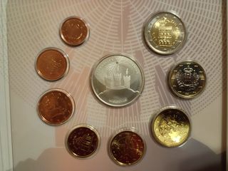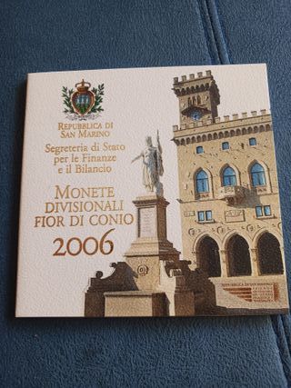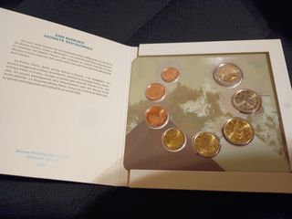 Conjunto de monedas de San Marino del año 2006, con las 8 monedas del año, de 1 céntimo a 2 euros, más una medalla conmemorativa de plata de 5 euros, 9 en total. Carteral original