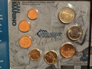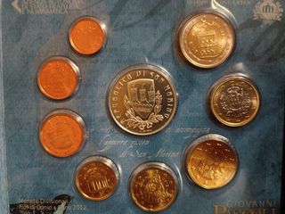 Conjunto de monedas divisionales de San Marino del año 2012. Incluye monedas de 1 céntimo a 2 euros. En cartera original