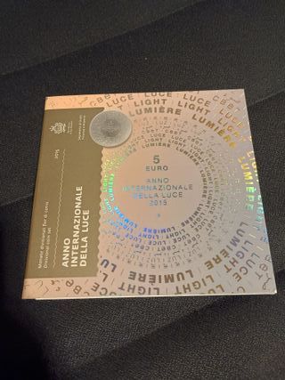 Conjunto de monedas de San Marino del año 2015. Cartera de 8 valores dedicada al año internacional de la luz. 1 céntimo a 2 euros. Incluye medalla conmemorativa de plata de 5 euros. En cartera original