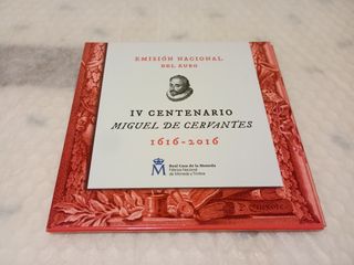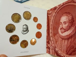 Cartera conmemorativa de la Emisión Nacional del Euro de España en 2016, celebrando el IV Centenario de Miguel de Cervantes. 8 monedas kms de 1 céntimo a 2 € + moneda conmemorativa de 2016 del acueducto de Segovia