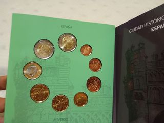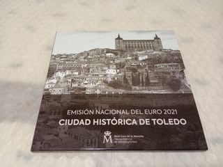 Cartera de la emisión nacional del Euro 2021 de España, dedicada a la Ciudad Histórica de Toledo. 8 monedas kms de 1 céntimo a 2 € + moneda conmemorativa de 2021 de la Ciuda de Toledo