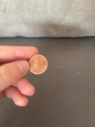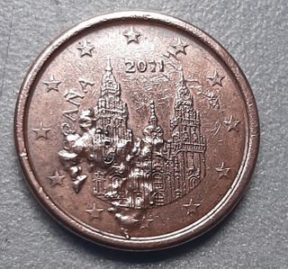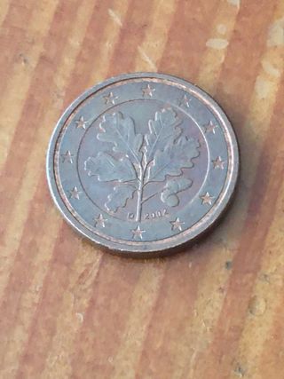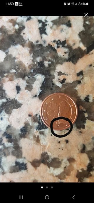 Moneda de 1 céntimo diseñada en Alemania en 2002 por el arquitecto Rolf Lederbogen. Con un error en su color distinto a las demás, Aparte con un error de acuñación con un círculo de un color aún más denso, se puede observar en la imagen el círculo perfectamente.