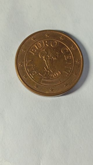 Moneda de 1 céntimo de euro conmemorativa. - Diseño de la flor. - Año de acuñación: 2011. - Inscripción 1 EURO CENT.