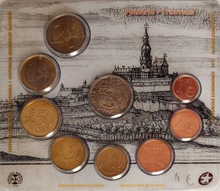 Cartera monedas desde 1 céntimo a 2 euros del año 2011 de Eslovaquia (incluida la medalla PONITRIE). 20 euros. Otras Carteras: 2003 Luxemburgo: 30 euros (incluye sellos de correos) 2003 Finlandia: 32 euros (con medalla) 2005 Holanda: 28 euros (con medalla) 2008 Malta: 25 euros (incluye sellos de correos) 2014 Letonia: 30 euros 2004 Bélgica: 22 euros (con medalla Cruz Roja)