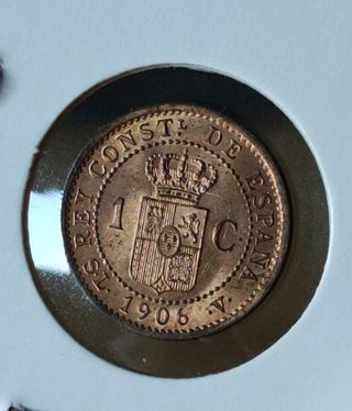 Moneda de 1 céntimo de 1906 *6 SLV, Alfonso XIII, sin circular, brillo original. Más monedas en mi perfil. Hago descuento por la compra de más de un artículo de mi perfil.