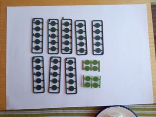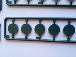 48 peanas de plástico para figuras y soldados de escala 1/72. son circulares y del tamaño de una moneda de un céntimo.