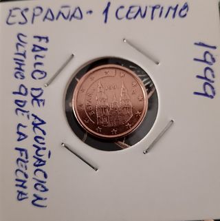Moneda de 1 céntimo de euro Fallo de acuñación Último 9 de la fecha Cualquier duda preguntar Realizo envíos