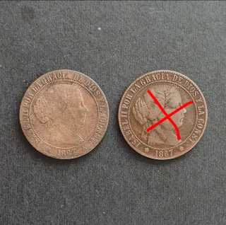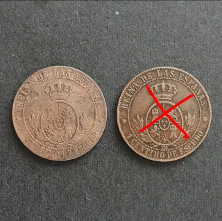 Moneda de 1 céntimo de escudo de 1867, Isabel II. Ceca de Segovia. Aleación cobre.