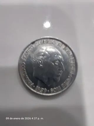 Moneda de 10 céntimos del año 1959. - Diseño con perfil. - Inscripción 1959 visible.